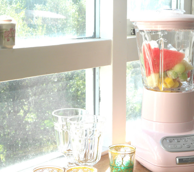Couple of handfuls of frozen fruit of choice (I used mango/pineapple/grape)